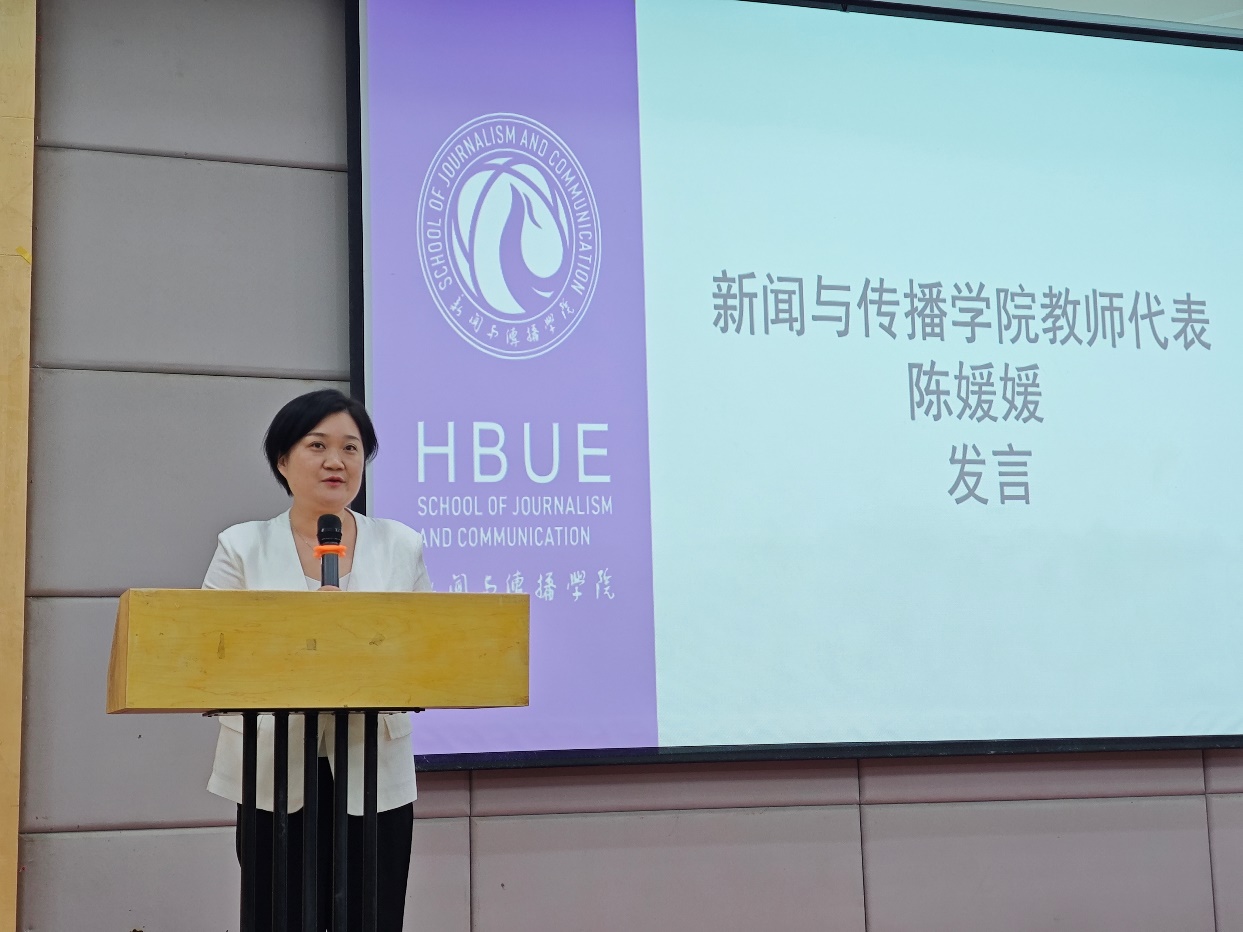 教师代表陈媛媛教授希望同学们在信息过剩、知识爆炸的时代,要认清自我,在加速发展的社会中寻找稳定的自我,做一个有目标的我,做一个奋进的我,做一个健康的我。