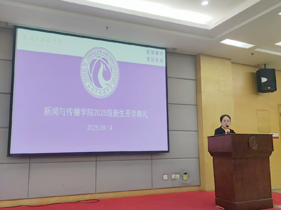 9月14日上午,新闻与传播学院2025级新生开学典礼在五号报告厅隆重举行。学院领导班子成员、系部主任、教师代表、辅导员以及全体2025级新生参加。学院党委书记周志荣主持。
