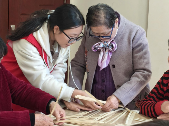 活动伊始,同学们前往了佛祖岭的老年人活动社区,进入社区时,看见老人对同学到来的开心,这也瞬间点燃了同学们参与热情,大家纷纷对这门古老手艺表现出浓厚的兴趣。