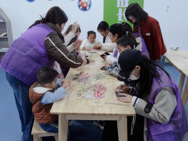 活动现场氛围热烈,呈现出动人的教学相长图景。领悟力强的孩子很快掌握了编结技巧,自豪地展示着自己的作品;而稍显生疏的孩子则在志愿者鼓励下,从线绳打滑到逐渐熟练,最终都完成了独具特色的编绳作品。这种以快带慢、鼓励为主的教学方式,极大鼓舞了孩子们的信心和积极性。志愿者们不仅是技艺的传授者,更是文化传播的引导者,在实践中践行着宽眼界、深情怀、强创新的育人理念。