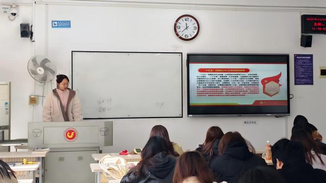 11月18日,“经叹号”青年宣讲队队长刘美琪面向新媒体广告2341班,开展“在接续奋斗中谱写中国式现代化新篇章”这一核心主题宣讲。