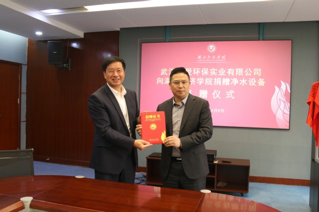 许传华强调,长期以来,湖北经济学院始终秉持“厚德博学、经世济民”校训,扎根荆楚、服务地方,着力培养“三有三实”高素质应用型人才,奋力开启“新财经”改革新局面。学校将妥善用好这批净水设备,把企业的关爱转化为育人动力,持续优化育人环境,并期待以此次捐赠为新起点,进一步深化与溢爱环保的全方位合作,共同推进实践教学、人才培养、项目研发,打造校企协同育人新典范,为服务湖北“建设全国构建新发展格局先行区”战略大局贡献更大力量。